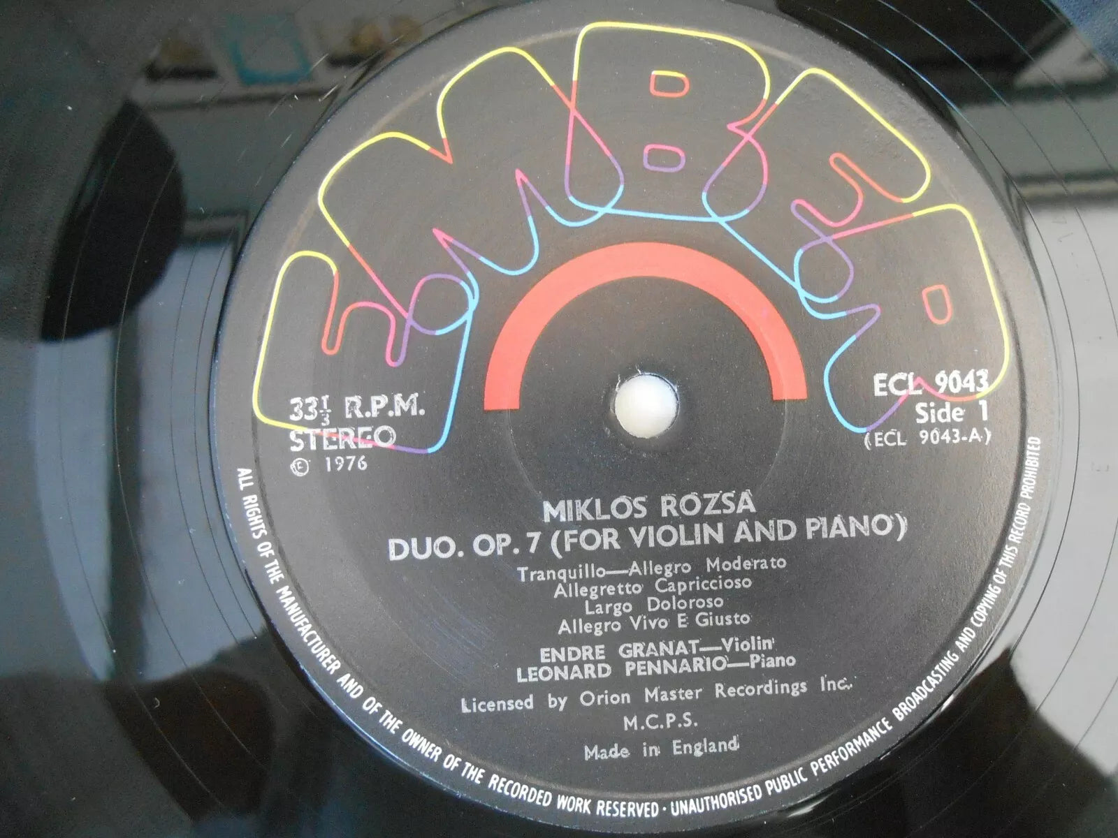 Miklos Rozsa – Duo, Op.7 · Little Suite, Op.5 / Variations On A Hungarian Peasant Song, Op.4 Ember ECL9043